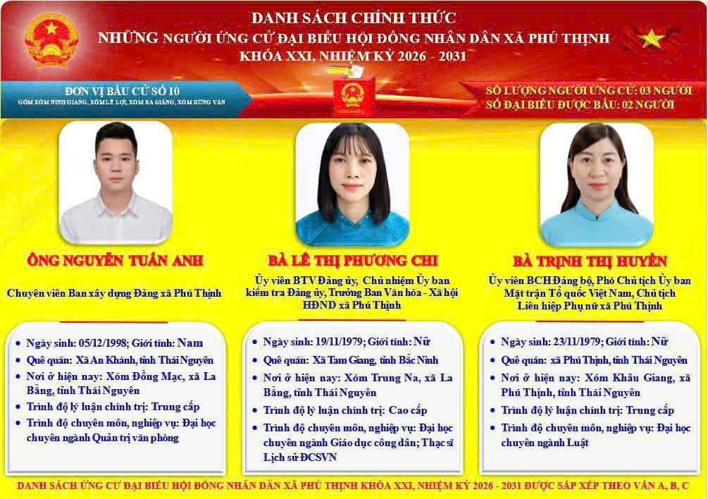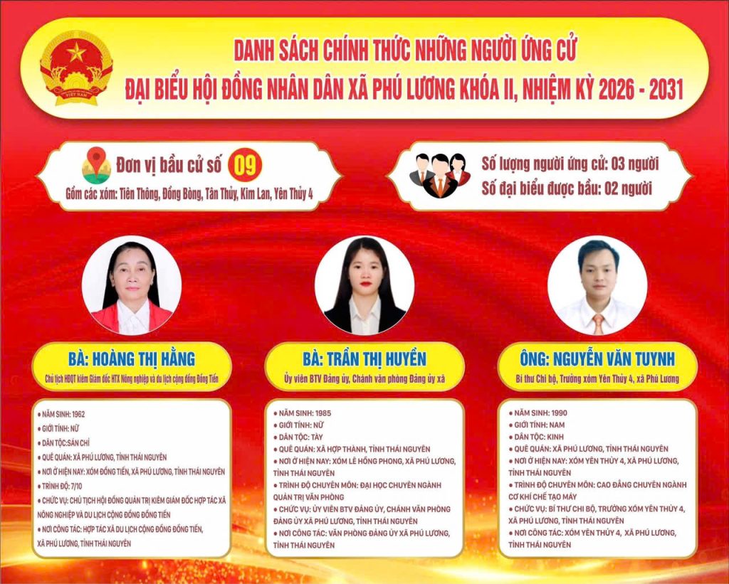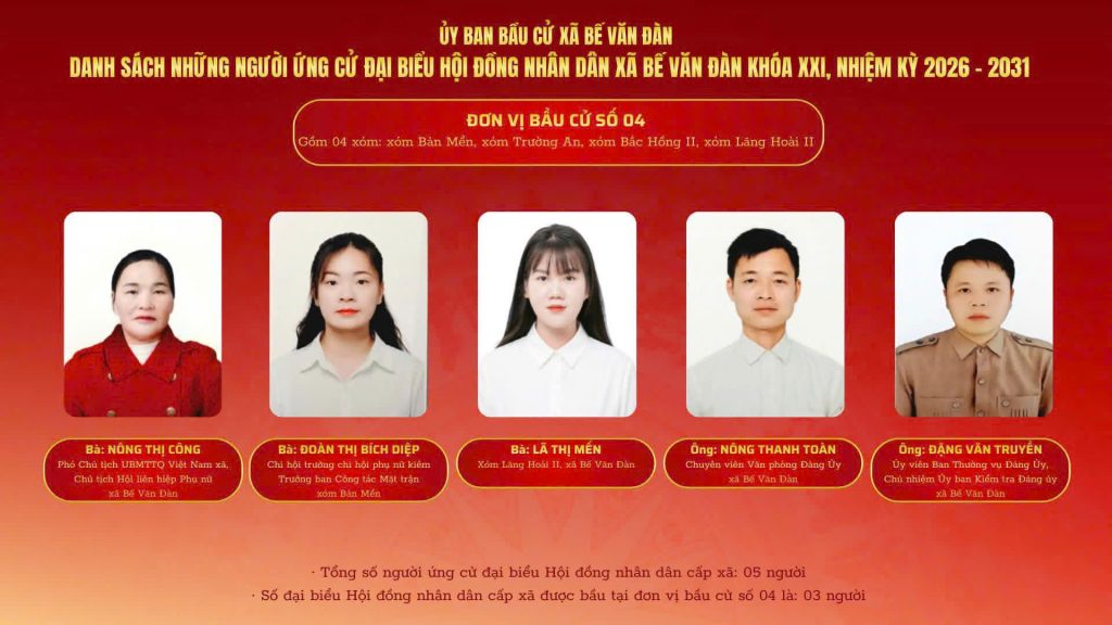 Khoa Kinh tế và Quản trị trân trọng chúc mừng một số cựu học viên và cựu sinh viên của Khoa đã vinh dự được đưa vào danh sách chính thức những người ứng cử đại biểu Hội đồng nhân dân cấp xã nhiệm kỳ 2026–2031. Đây là niềm tự hào không chỉ của cá nhân các cựu học viên, cựu sinh viên mà còn là minh chứng cho chất lượng đào tạo và sự trưởng thành của các thế hệ học viên, sinh viên của Khoa trong quá trình công tác và cống hiến cho xã hội.