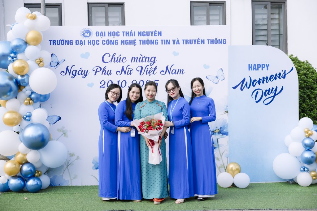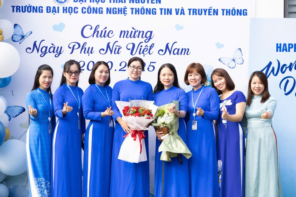 Tập thể nữ giảng viên trường Đại học Công nghệ thông tin và Truyền thông chụp ảnh lưu niệm