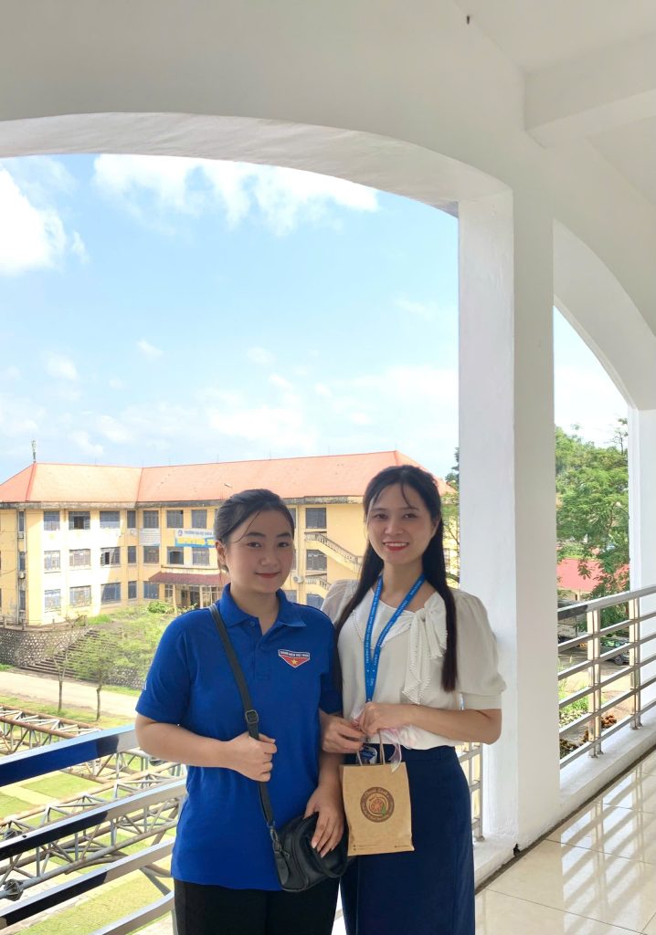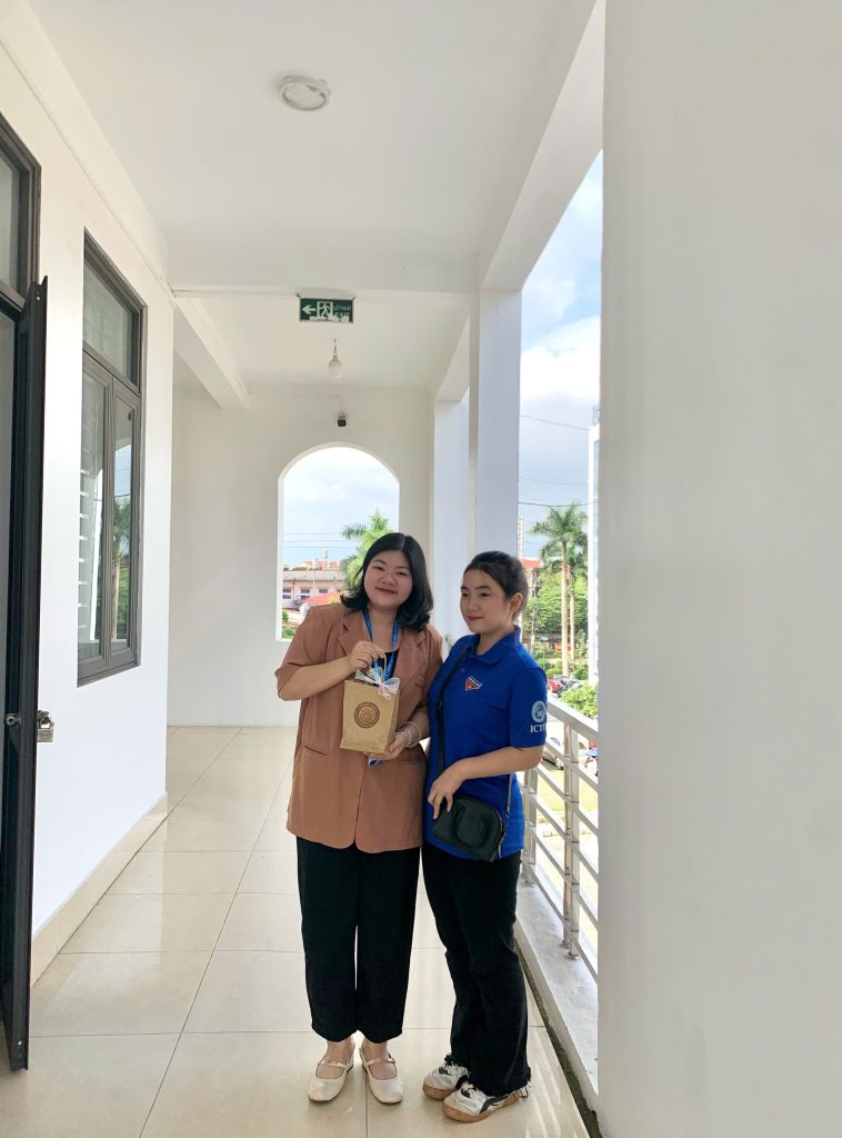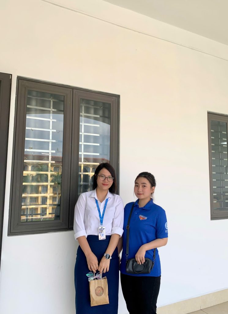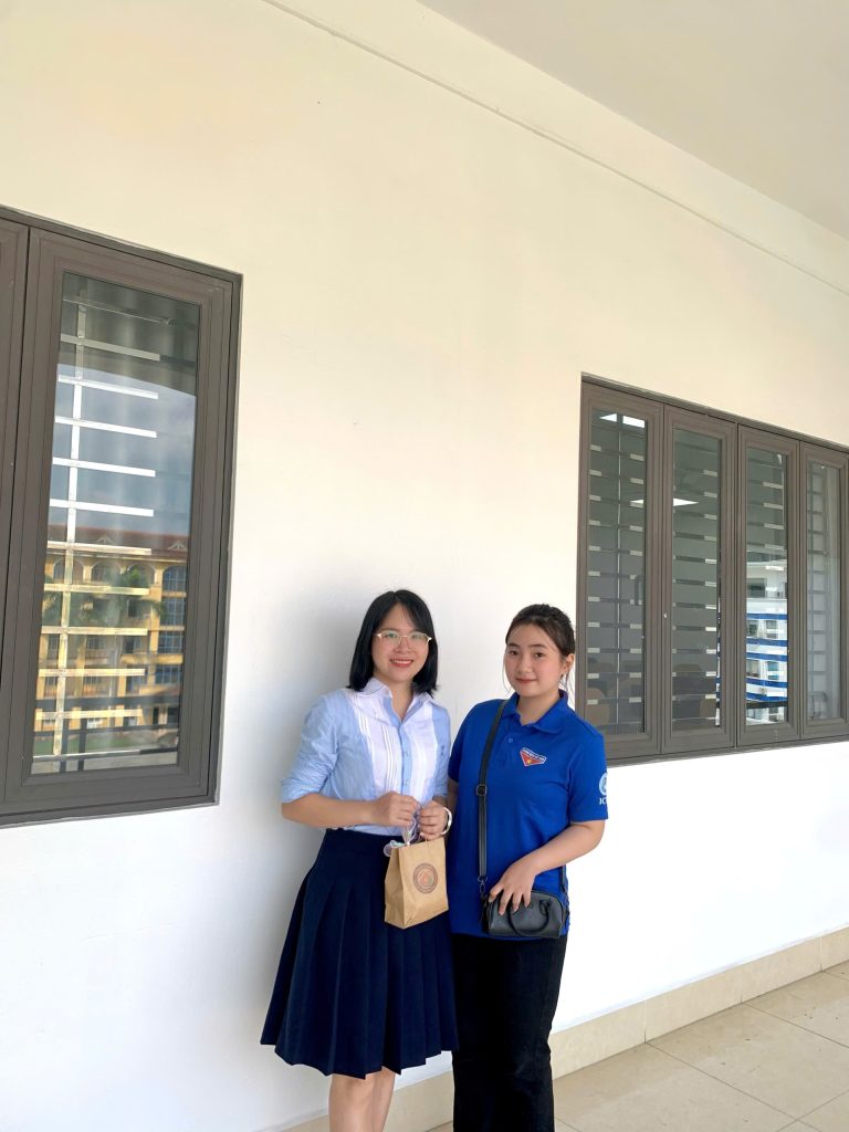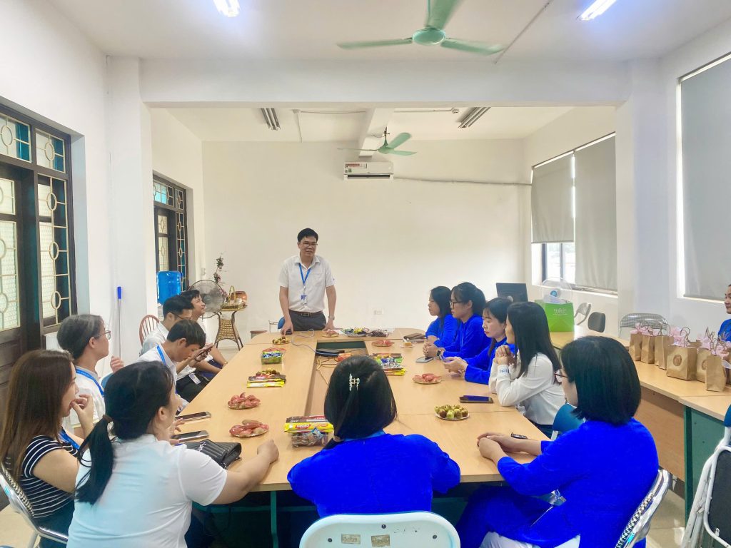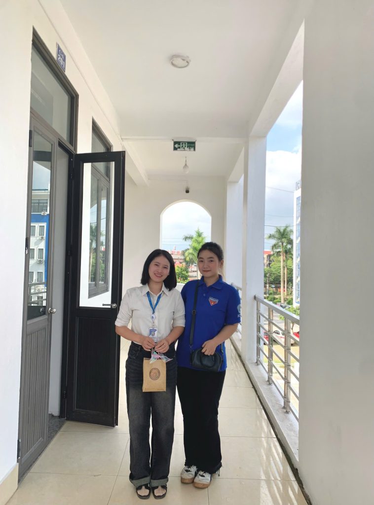 Đại diện Liên chi Đoàn Khoa tặng quà cho các cô giáo tại văn phòng Khoa