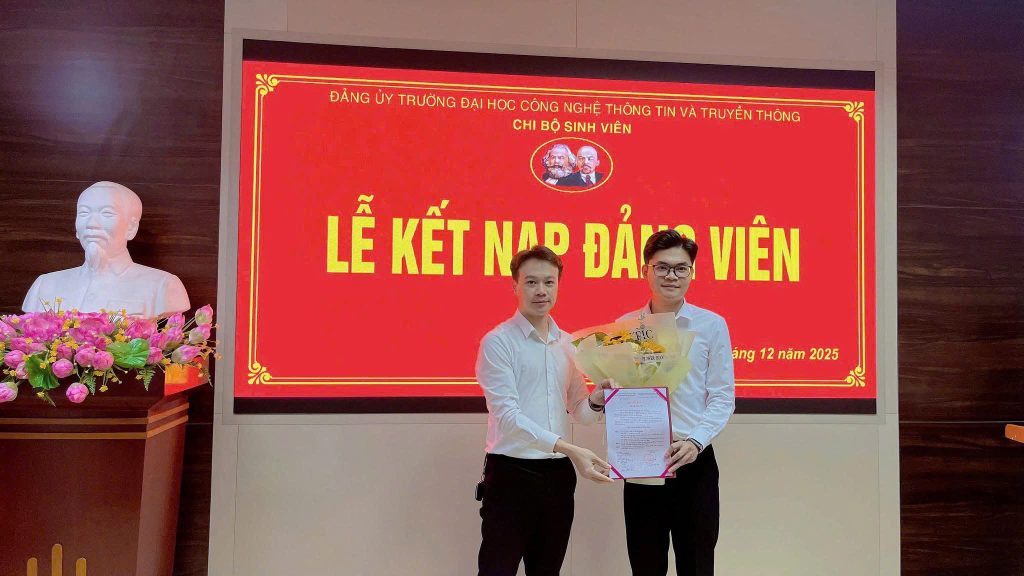 Trong không khí trang trọng và giàu ý nghĩa, Chi bộ Sinh viên Trường Đại học Công nghệ Thông tin và Truyền thông – Đại học Thái Nguyên đã long trọng tổ chức Lễ kết nạp Đảng viên mới, ghi nhận quá trình phấn đấu nghiêm túc, bền bỉ của các đoàn viên ưu tú trong học tập, rèn luyện và tham gia các hoạt động phong trào.
